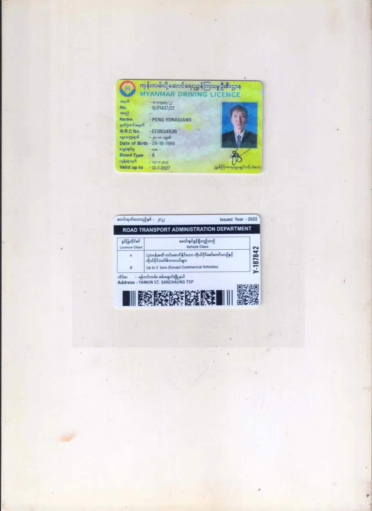適用證件類型:
