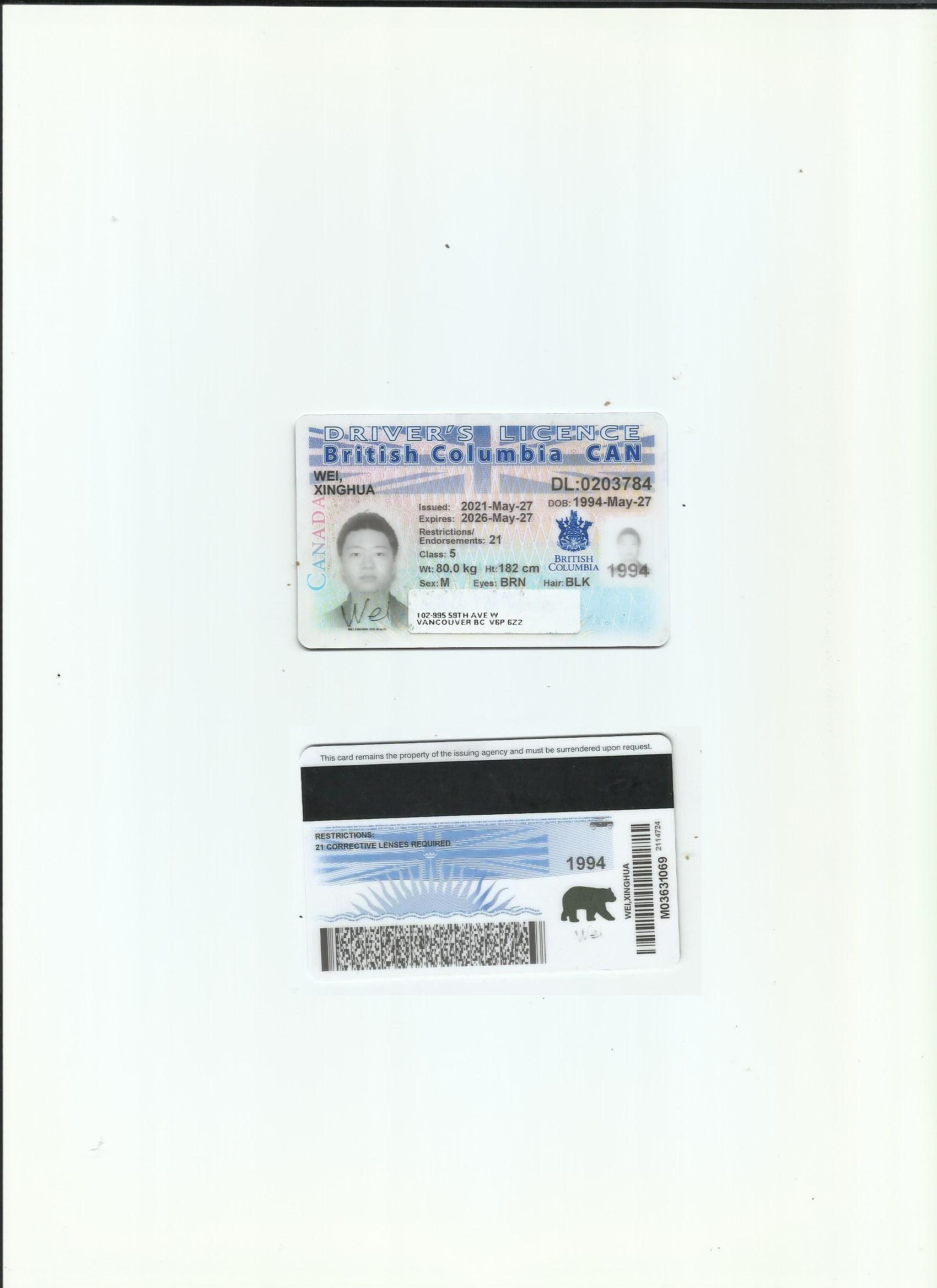 咸陽翻譯 政府指定咸陽翻譯 公安 車管所 加拿大不列顛哥倫比亞省駕照翻譯模版