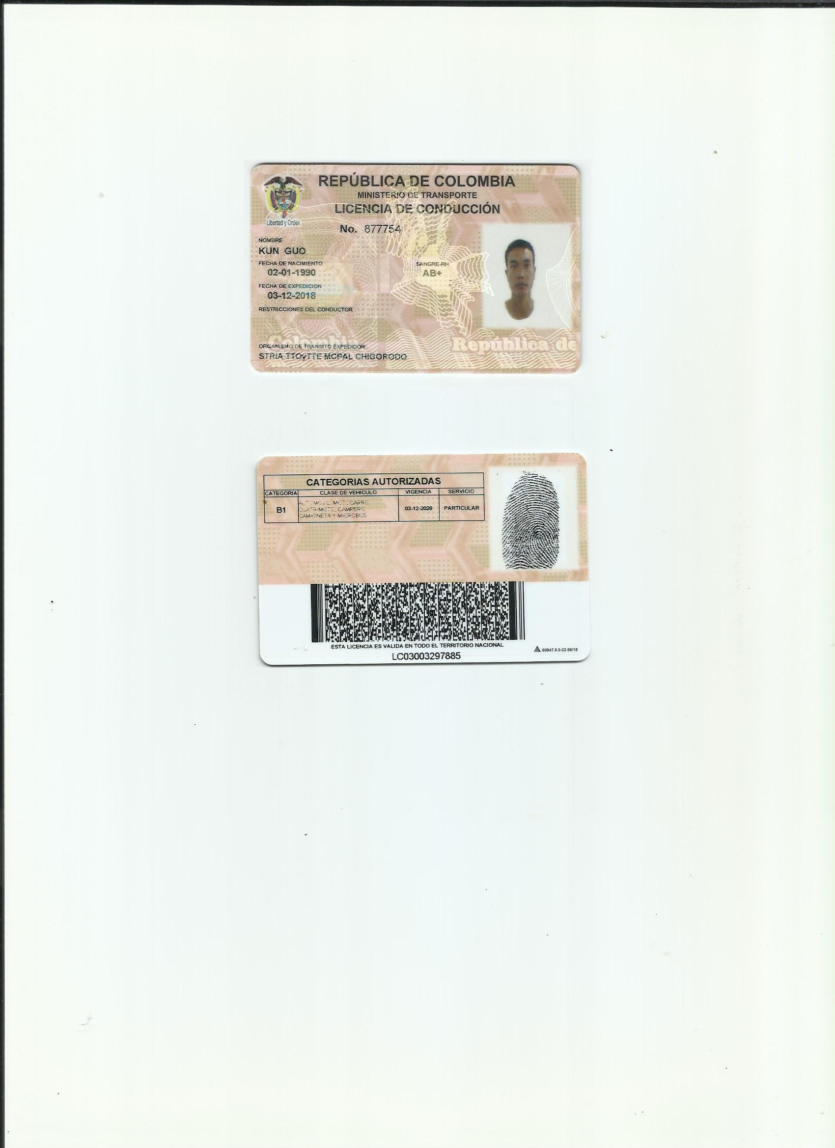 咸陽證件翻譯蓋章 成績單翻譯 戶口薄翻譯 駕照翻譯 哥倫比亞駕照翻譯模版